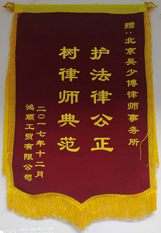 張帆、趙玉璽收到江西客戶贈送的錦旗