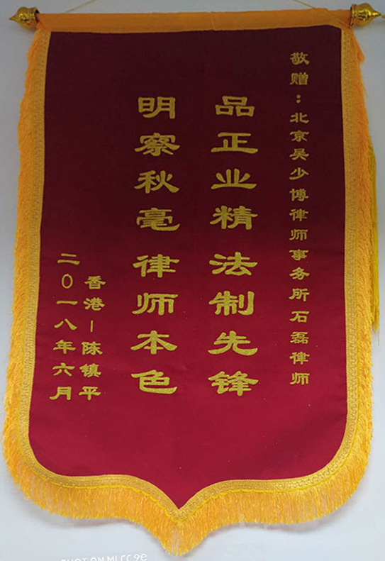 趙國兵收到石家莊嘉和廣場客戶贈送的錦旗