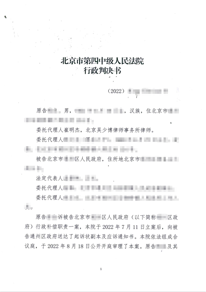 本案代理律師 北京吳少博律師事務所郭昌通 案情摘要: 無證房居住多年未辦證 被確認為違建